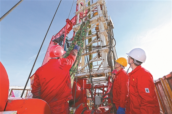 玉門油田鉆井作業(yè)現(xiàn)場,鉆修井設備專家正在進行設備檢查。米穎輝 攝
